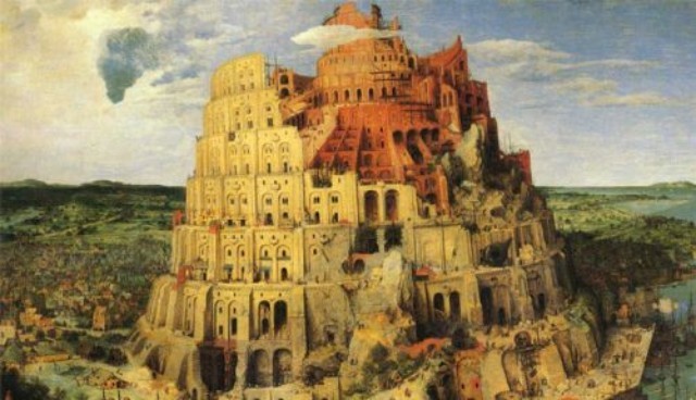 大洪水劫后,天下人都讲一样的语言,都有一样的口音。诺亚的子孙越来越多,遍布地面。当时人类联合起来兴建希望能通往天堂的高塔。为了阻止人类的计划,上帝让人类说不同的语言,使人类相互之间不能沟通,计划因此失败,人类自此各散东西。