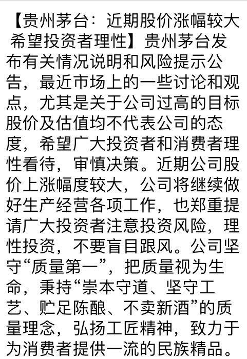 那么问题来了,如果实体经济赶不上广告肿么办?自然是要靠监管的力量。比如现在神马技术分析在强大的特停面前都是渣(用《三体》的话说,你们都是虫子!)。再比如今天大老板明确的向市场喊话:“理性看待茅台的股价。”白马龙头怎么样,老板说了,你可以涨,但只能慢涨,不具备暴涨的基础。