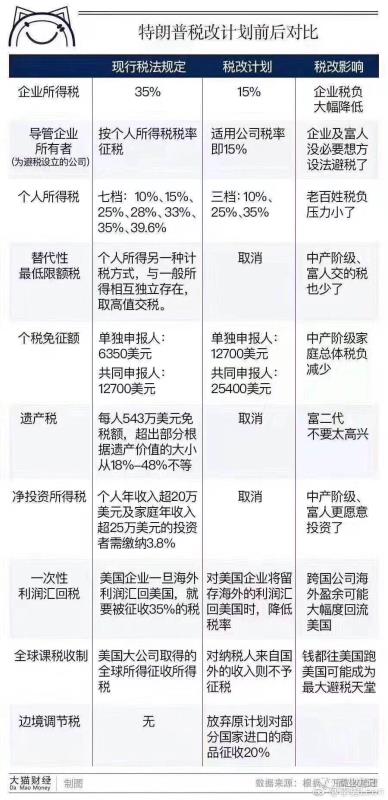 有个问题,无论是中国公务员还是美国公务员都要用税收养活,包括基建等财政支出,减税了这部分钱咋办?本来美国就是赤字财政,这一次这个赤字又会扩大,只能靠经济复苏来补缺口。我们看到减税方案里减掉一次性汇回税的税率,促进跨国公司把利润汇回美国。大家要主要川普的内阁都是跨国公司大老板或是高管,我猜他们一定计算过这样幅度减税条件下会对美国经济复苏的影响,因为这些人自己的公司包括东家都是美国纳税大户;