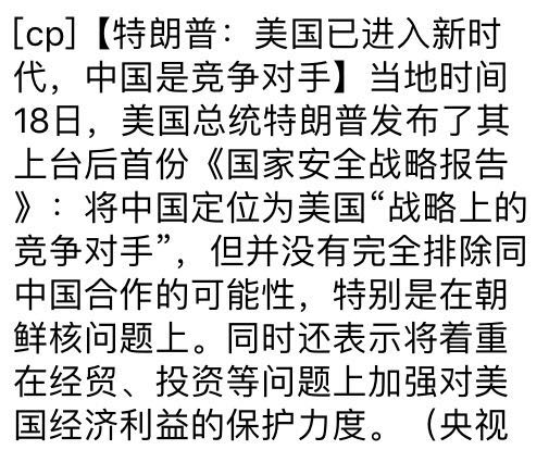 今天被刷屏的才不是股市咋地,而是美国又对中国发出了舆论挑衅。话说,美帝国师班农说美国过去10年纵容了中国,让中国崛起……有一个“中国威胁论”的2.0版本。看来他们就没好好学习十九大报告,关于和平崛起的精髓。这个国师是特朗普前首席顾问,由于在白宫不方便讲话,就出来发表演讲。