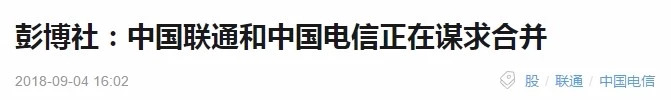 另外,前天关于联通和电信合并一事也是彭博社这家媒体先散出来的假新闻(如下图),赶上现在5G的风口,联通股价还算稳定。对于现在各个媒体圈里传的图片也好,新闻也好希望大家能够三思。