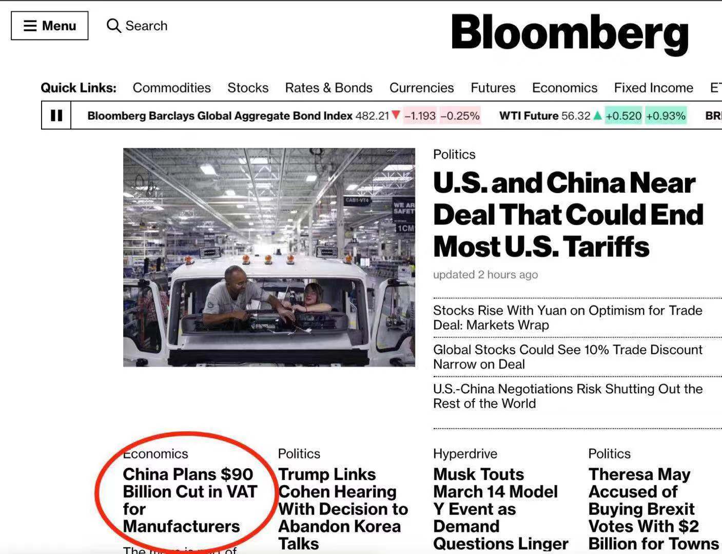 彭博社的观点是来自大摩(摩根斯坦利),预计中国即将把制造业增值税税率降低3%。然后摩根士丹利算了一笔账,减掉6000亿人民币的税收,可能带来0.6%的GDP增长。