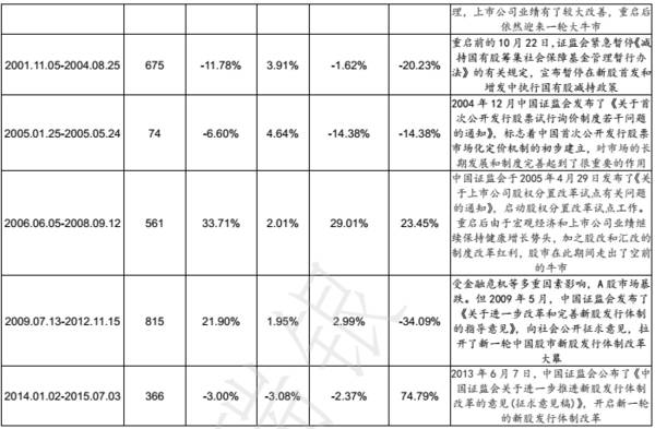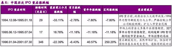 对中国历次IPO重启分析,可以大致判断在标的资源供给增多时,股市的波动情况。自1990年起,中国一共经历了8次IPO暂停和重启,重启持续时间也逐步在拉长,分析历次IPO重启前三个月,重启首月和首半年的涨跌幅、区间涨跌幅可以看到,IPO并没有明显对股市产生一致性的涨跌影响。前三个月重启前,市场波动相对增大,重启后市场整体仍然沿着自身的经济趋势在变化。