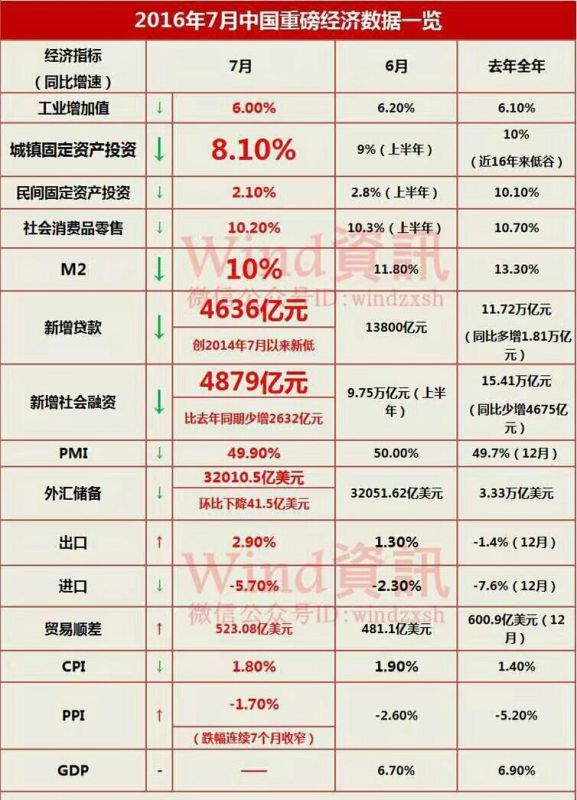 虽然,昨天公布的7月份各项经济数据显示经济下滑的还是比较明显的(见下表),但是几位领导又照旧携吃皇粮的砖家们出来解释(经济数据不好是因为我们在供给侧改革,要有个过程),大意就是我们经济基本面还是很好的。其实,这种套路就是一方面安抚民众,一方面去想各种对策。经济学里有个叫【流动性陷阱】的概念,就是你怎么投放货币流动性,企业都不投资,就把钱塞在手里。如果各位还不懂,可以看看欧美、日本这几年都在这个井里没出来。因此,一些网红跳出来说,哎呀,大家注意,别掉下去。