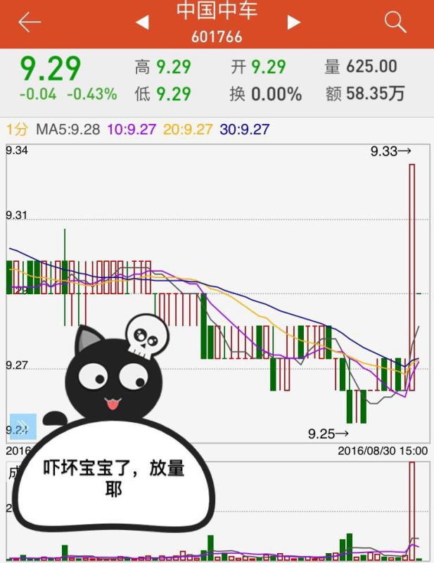 现阶段,大盘走慢牛不重要,重要的是很多个股自己已经走出了慢牛行情。菠菜仓里就有一只(不过我不会告诉你代码,生气吗?),每天都涨,就是不封涨停板,这样的最好(不用担心被哪天贴封条)。国资改革的有的小票,也在默默的走出自己的行情。OLED这种借着苹果7上市,今天早盘超跌反弹,但不看好其持续性。今天尾盘中车有点异动,明天是本月最后一天,看看一带一路最近有没有资金进来,这点能佐证我对于G20的判断。