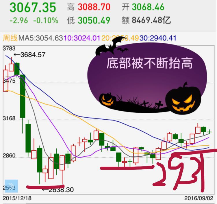 日线看比较纠结,放到周线看就很明显的看出底部在不断的抬升;