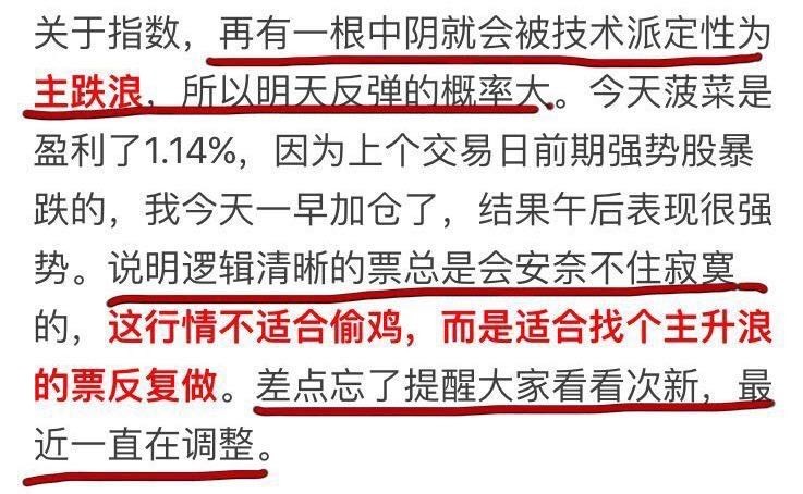 我提醒大家警惕一种人(言论),三天两头就在你耳边大喊满仓或是空仓,直观感觉他是在帮你,其实他是在释放贪婪。记住,满仓和空仓都是一种贪婪,这根本就不是一种交易思路。