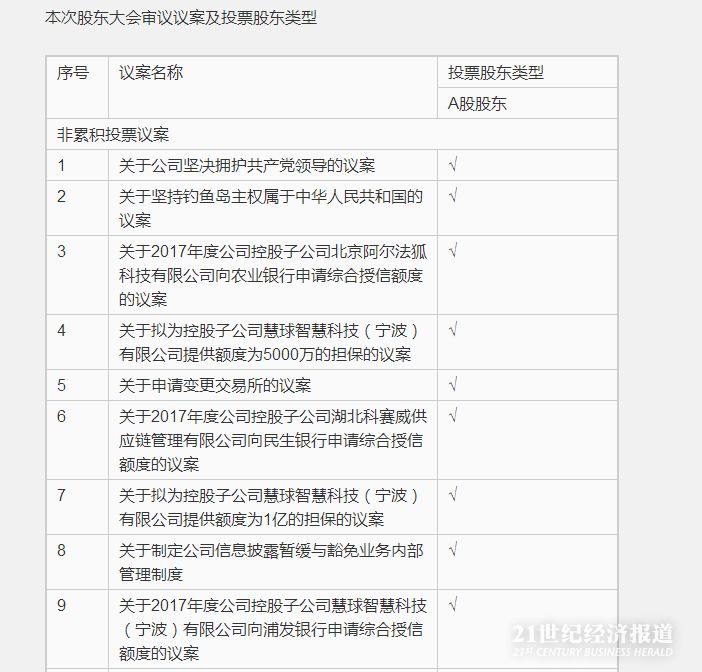 公告显示,ST慧球董事会提出的1001项议案,包括了《关于公司坚决拥护共产党领导的议案》、《关于坚持钓鱼岛主权属于中华人民共和国的议案》、《关于调整双休日至礼拜四礼拜五的议案》、《关于第一大股东每年捐赠上市公司不少于10亿元现金的议案》、《关于成立妇女委员会的议案》、《关于申请变更交易所的议案》……