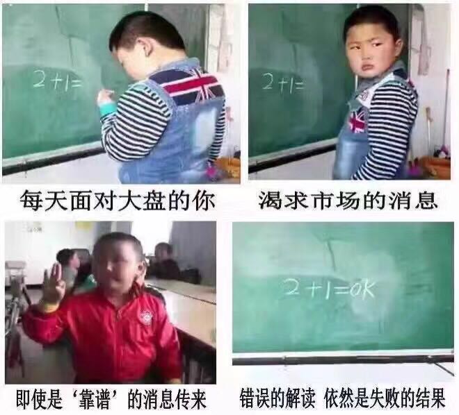 今天的各种维稳的组合拳也印证了领导们真的很关心资本市场,波动太大可能真的会和乌纱帽挂钩,你说今年股市会特别差吗?追求交易中的绝对底,本身就是一种贪婪。底和顶都是交易自然形成的,只要跟上自己判断的趋势去做就好了。为什么说这一段呢?是因为今天后台有位美眉说虽然看了菠菜文章,但还是忍不住一直抄底,结果抄到了半山腰,现在不知道该怎么办了。我问她一个问题,你认为今年创业板还有可能一直再跌500点吗?她想了一下觉得可能性不大。那么抄底早被埋的要么是心太急,炒的早了;要么是抱着赌一下的心态。不过结果既然已经这样了,我更不劝大家去割肉,而是锻炼着日内做T。最近这种日内波动很大的情况下,很适合做T,利差比较大。如果T飞了就认头,换一个再练习。现在不少票都跌到5日线以下了触碰5日线是可以有的。另外,如果真的打算装死,我是认同的,因为我对于今年总体感觉还不差,国改等主线票可能机会大,其他题材类只是空间小,但并不是没有机会。所以,操作上只要不急躁都有的赚。