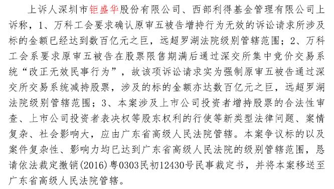 先道个歉,由于我年幼无知,半夜脑缺氧,昨天写的宝能被判买入万科无效,其实仅是还在打官司木有结果。这事要细细扒不过是因为流程的问题姚老板被王石反咬一口。去年7月份,宝能增持万科A没有写作文向国务院等监管机构汇报,所以在那时候万科工会小股东就已经把这是告到了罗湖区法院。姚老板说,我们金额大,你这罗湖区法院没资格审判,我要去中院。深圳中院说你这事被告钜盛华公司的住所地位于罗湖区法院辖区就由罗湖区法院办,驳回姚老板请求。专业律师们痛斥媒体记者不懂法,八卦的姿势不正确,是裁定书不是判决书,就断章取义骗流量。记者们又马上重新写了新闻稿更正了一下,继续霸占了点击率。
