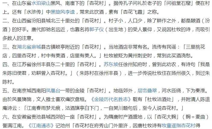 一千多年前的一个清明节,一位官二代杜牧出来溜达。看到行人都忙去祭祀扫墓,于是打算自娱自乐一下,去个酒吧KTV一下,就问了一个牧童。于是牧童就指给他去“杏花村”。杜公子很happy,回去写了篇作文,千古流传:
