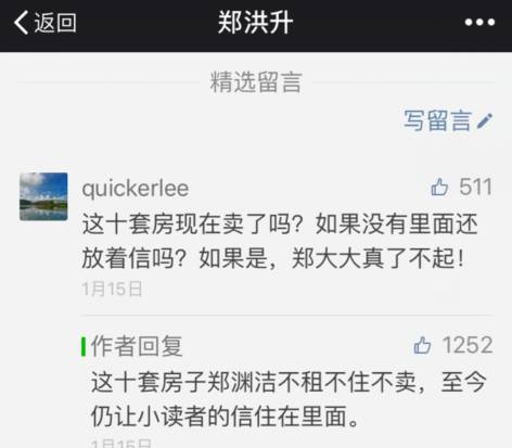 而这个童话始于年初的时候,郑渊洁的父亲在自己微信公众号上回忆了一段往事。他提到,上个世纪八、九十年代,郑渊洁在北京买了一口气买了10套房,而这个目的更是令人发指——为了放读者的来信!!!(PS:要不老郑今天自己证实,我压根不会记得这件事!)