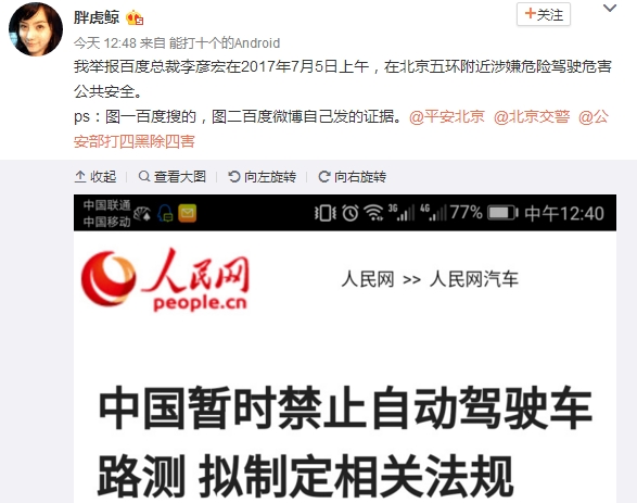 我今天在思考一个问题,IT行业的大佬们最近的这些事罗列在一起有点意思。首先是乐视大生态的泡沫破了,被银行查封贾老板个人财产(包括其名下的股份),然后捏腾讯因为王者农药被推上舆论风口。今天百度李彦宏为了抢占头条在帝都五环测试自动驾驶……亲们想过没有为什么李彦宏不去长安街去测试自动驾驶?估计他也考虑的安全问题,但我转念一想,为什么哥们不去房山、门头沟这些人少的地方捏?估计是考虑那边的警力也少,不方便宣传吧?