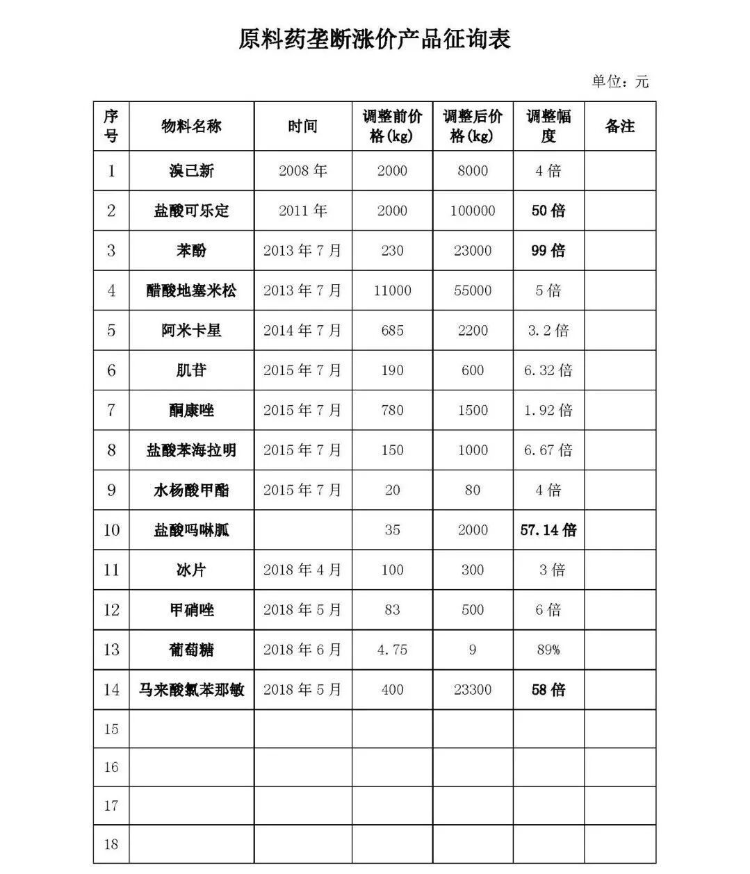 另外,外界并没有注意的是原料药本身在走垄断趋势,也就是价格控制在少数人手中。对于药品这种刚需如果你把原料药生产垄断了,那么就可以任意坐地起价了。因此不要人云亦云的打击和反对仿制药,给你看看下面这个表,涨价的后果是要患者买单的。