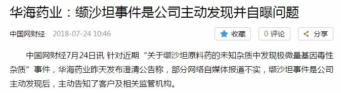 华海药业的股价确实被这事影响了,但我个人觉得和7月6日二股东减持有一定的关系。另外现在接着长生生物引起的塔西佗陷阱,随便说点什么医药行业的负面消息都可以引起恐慌,最根本是积怨已久。