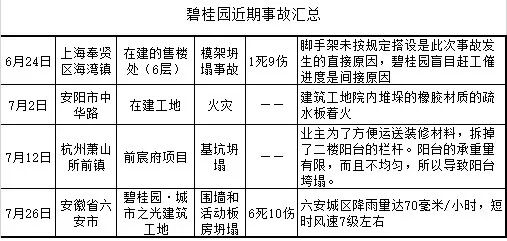 最近一个多月,碧桂园已经连续出现4起项目事故,至今7死19伤(如下图)。我一直没有写这个事,是因为我没懂后面的逻辑。看了不少关于碧桂园的报道,主要围绕的是赶施工进度。我特别通过我在房地产行业的朋友了解到一些情况: