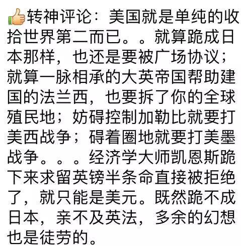 大领导说中国人要文化自信,然而我看到的是更多的金融行业从业人员对于我们制度的本身的不自信。一出现问题就要先去国外找经验,以美国的价值观、商业逻辑、甚至美式“民主”来审视国内的各种问题确忽视了中国经济的高速发展正是得益于社会主义制度的优越性。归根到底,马克思创立的政治经济学是一门经济学,是解决国家经济问题以及社会资源分配效率的学说。然而国内的金融行业从业者却不断背离那个出发点。