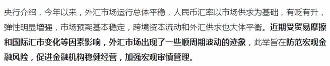 周末出了一条利好,央行决定自2018年8月6日起,将远期售汇业务的外汇风险准备金率从0调整为20%。这个政策对于汇市还是有较大影响的,因为这样做空人民币的成本就高了。一直有人在传汇率会到1:8,我也不知道依据是什么。目前看短期人民币是否能企稳是股市的关键所在。现在说指数再跌多少我觉得都是空口无凭,只能看政策面是否有缓和以及能否有进一步利好。