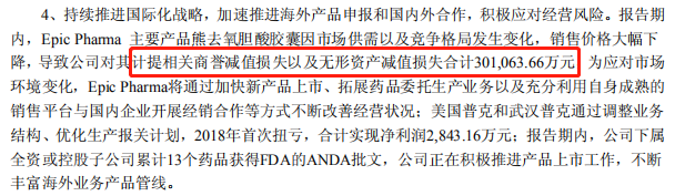 2.2016年收购Epic Pharma扩充麻醉镇痛药产品线,交易总价36亿,确认商誉27.76亿;