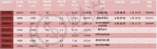 2016年的首批新股共7只,上交所3家,创业板3家,中小板1家。