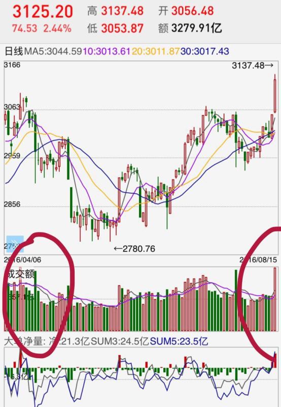 2.周五的涨没有出现量价齐升,而今天成交量和流入量明显突破前高。沪指的成交额接近4月13日的3300亿,说明很多资金很积极(这仅是事物的表象),接下来我们要考虑为什么资金在这里进场;